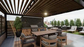 Brand New Duplex Up Penthouse with uniquely wide layout. Sits on a 35 Ft wide corner lot., which brings in tons of natural light in. Thoughtful floor plan delivers quality craftsmanship throughout. High-end, intergraded appliances, custom floor to ceiling cabinets, Quartzite countertops, wet bar with wine/beverage fridge and balcony on the main floor. Upstairs offers: large primary-suite with steam shower, soaking tub and walk-in closet, additional 2 bedrooms and a full bath. Penthouse's come with large private roof deck with views of downtown. Still time to select some finishes.