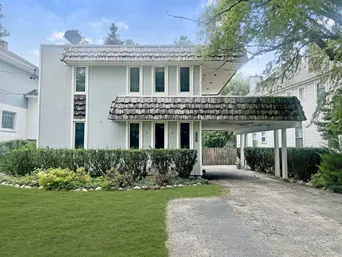 Mid-century meets this wooded retreat right in UpTown! Amenities include a primary en suite, a spacious family room with a fireplace, a first floor office, big bedrooms and a full basement. There's a side drive to a 2 1/2 car detached garage. Remember the carport can double as a roof garden and a covered parking and it's the perfect grocery drop spot.